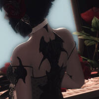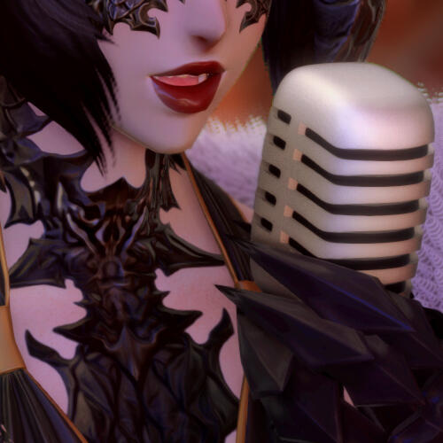 The elezen moves like a confident apparition to the piano bench. Once seated, he takes a slow breath as if to quiet time itself. He passes a sly glance towards the stage. While awaiting the confirmation, lithe fingers spread across the piano, his touch not so different than a hand brushing against a lover’s spine in chilly anticipation. Without looking away from the chanteuse, the first chord blooms.▊▊ Peony cranes her pale neck, eyes surveying the crowd as she takes the stage for yet another evening more. She tilts her horn towards her companion seated at the piano, glancing over through lowered lashes. He starts the dance, and she takes a deep breath before her voice rings a haunting falsetto. It is an auspicious night in the Shroud, and the moon shines upon those that lurk in the dark.Gloved fingers flourish across the keys. The instrument before him quiets and cries through the rise and fall of his hands. Each note is a finger that caresses each face in the lounge. It beckons each patron to the depth of sound itself, the thing that trembles in their chest, and then deeper still. These depths are embraced by the music, each darkened spark nursed to flame.▊▊ Her song moves in a waltz around her partner’s melody. The melodious sound echoes as if it’s traveling through hallowed halls of a cathedral, a hymn to the dusk. Dark, steel claws unfurl to grasp the air as Peony sings, the tune of her voice rising to beg for the audience to listen.**Voice and key swirl together as if locked in a dance. In a fleeting instant, the audience no longer sits amongst the warm quarters of a lounge and are instead sat amongst the silver tears of weeping willow branches and forgotten headstones. This seems a dirge for all that listen. For whom, or what, do they mourn — what last desire stirs in each breast?▊▊ Tonight is a serenade for friend and fiend both, under the light of the Hunter’s Moon. Her song– their song, is a fanciful opera for the ages. Her hips sway from one side to the other and the silks of her dress kiss the stage. It’s tantalizing, it’s horrifying, it is eternal twilight. Take hand in prayer, for she sings the grace before this evening’s feast.The musician haunts the instrument before him, his body moving after each note as if a wraith down a corridor. The chase crescendos and then relaxes, a coordinated hunt between composer, singer, instrument, and at last, patron. Each refrain is a looped arm around a waist, each rest a breath at the back of the listener’s neck — it is a chilling but comfortable embrace, begging to be leaned into.▊▊ Even amongst the delight and devilry, the spirits must be laid to rest. Breath beneath her chest, the rise of Peony’s voice begins to descend. Those under her spell are freed if they so wish, lest they desire to be captivated by a siren’s charm. A graceful hand reaches towards her partner, asking him to lead her and song both from the confines of the piano bench.While the singer rescinds her looming spell, the pianist allows his to linger in one final, minor note that clings against the heart of every listener. He gives one small bow of head to the piano itself before seeking his place at the songbird’s side — Death and the Maiden, if only for the evening. Taking her hand, he kisses it softly, sure to look over her knuckles towards the patrons before them. To him, the lounge still seems a mausoleum long after the final note fades.▊▊ The hand not kissed pinches silk between two claws, lifting Peony’s dress as she bows with the gentleness of a ghost. The evening still lingers, and the look on her face graces the audience with one final wish: Be well. Good night.