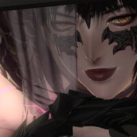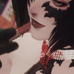 ▊▊ notable features:fangs, split tongue, black-stained fingers, deep black scales, and ruby red lips.voice is rich and sultry, speaking eorzean common with a doman accent. her cadence has a particular rhythmic quality to it, and in rare occassions can even be considered melodious.for those with aethersight, her aether is clouded with a deep dark purple, indicative of her true form.