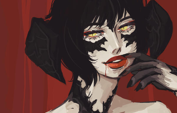 ▊▊ How practiced this dance has become, a pious ritual underneath each full moon. Peony gives Sacha a sidelong glance as he passes by, and she follows in Verrot’s wake as he guides her to the stage, lifting her dress so as to not drag against the hardwood. Her hand leaves his and she takes to the stage once more.Once at the bench, the musician gives one final cursory look across the small jewelry box of patrons. Among them he sees false gemstones set into gold rings, knotted chains long mishandled by their wearers, and some few silver pieces in desperate need of shining. As he sits, his fingers splay across the keys that will rub free such tarnish. His eye meets the jewel he had left at the stage, sat in satin and basked in dim light. This time, he awaits her voice before long fingers can drop and feed the air its chord.▊▊ The fabric of her dress flows across her legs as she delicately steps one foot in front of the other, skin shimmering pearlescent under the moon, a flash of blood red ruby in the dark. Her shoulders drop ever so slightly in a sigh before a breathy voice rings out. Pitched, a slow, decadent sound that glides through the audience’s fingers, too rich to touch as they turn ear and horn to song.Where the chanteuse unravels the long thread of her voice, the musician follows with skilled delay. Just out of time with one another, the melody is a disquieted dance in which the two partners have not yet aligned. This movement of piano and voice serve as a silk thread that might slip through each pearl in the audience. Together they begin to collect each listener onto the point of the jeweler’s needle, drawing them up into a necklace that might sit at the throat of the song.▊▊ Her voice is practiced footsteps just barely out of reach, the piano’s sound hesitant to catch up to the fragility of a precious gem. A determined dance partner miscalculates and catches their lover’s ribbon in lieu of a lock of hair, pulling the silk free. This waltz is more of a chase, with delicate hand offered and words of romance strung carefully from one’s lips, held gently to the light to inspect how each syllable shines.The pianist takes a breath while the songbird expends her own. It is a tremulous note that draws out, rolling over the bed of the song until at last the musician sets his fingers forward. What was once a bar dims to a bedchamber, each chord a breath sipped as two attempt to make one. The struggle no longer belongs to the performers — the hunger and need for union now sits in the audience’s lap. Alive, and beating, this is their desire made manifest. A tension rises in the time signature, begging two heartbeats align.▊▊ Each note hits the chest in palpitation, a thrum that travels through every sternum and soul in the intimacy of the room. The rise and fall of her voice is accented by the flutter of her eyelashes, curtaining sharp golden eyes as she glances over the audience. Her gaze lingers like a lover who cannot bare to leave and sensuality leaves her lips. Is her song caught in a lover’s embrace, or does her voice finally relent to one’s own desire? Where does one’s passion begin and the other’s end?Notes snag at the vocals like fingers catching at a wrist, a thigh, a hip. At last, the discordant melody unifies. The movement opens up with the pianist playing over keys like ribs. It is a gentle breaking of ivory, no more than what is needed to invite the audience deeper into each subsequent heartbeat. Each euphonic gasp and whine. This is what they wanted, after all — as all lovers do. To be so wanted not a single trace of self is left behind in hunger’s wake, if only for a moment. As voice melts into instrument, and instrument devours voice, the listener gives and takes until the line of self and desire blurs. They are naught more than what they want.▊▊ For this is the season of love, is it not? Musician and vocalist intertwined, enticing the listener to find their own indulgence, the kiss of this song becoming a sultry whisper that caresses the ear. Dulcet tones and sounds of ecstasy. The soprano of the songstress’ voice drips down slowly like a bleeding heart. She who started this refrain will not be the one to see it to its finale. Drink deep, dear listener, the sound of reverence. What is adoration if not a fierce craving wrapped in that same, pretty silk ribbon?Take, the piano says, have of your fill. The man above the instrument works it open with the same attentiveness one might devote to a lover kind. Desire abundant, red as wine and hot as hungry blood, flows freely this Snow Moon. In its tides, the din of the bar is lost and washed away. Hearts and heads lost to the current, they are waltzed over the silk sheets and rough ribs of his song until at last the final note is rung. It hangs in the air, cutting the necklace once collected and spilling its string of pearls back across the hardwood floor from which they came. In the palm of the composer’s hand, they are left starving, unsated, and streaked with red.▊▊ She bows her head to the piano’s rest, eyes closed and crimson lips curled. With an outstretched arm, Peony invites her accompaniment to the stage for applause before giving one final, longing glance to the audience.Verrot stands up from the bench and away from the keys so well adored. Looking out across the jewelry box, he still sees fool’s gold and forged diamonds, but knows that even his hands might make costume jewelry shine. He chuckles to himself as he moves to the stage and offers out a gloved hand to the brilliant ruby he had left on its plinth.